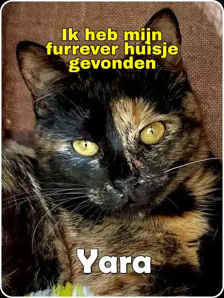 Yara zal met alle liefde van de wereld worden verzorgd door Jan, Angelique en Evy in het mooie Breda. Ook al had Yara nog even haar bedenkingen, was hond Dotty blij met haar nieuwe poezen vriendinnetje!